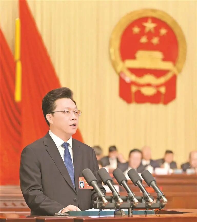 2月3日,宁夏回族自治区第十三届人民代表大会第四次会议在银川开幕。自治区人民政府主席张雨浦作政府工作报告。 宁夏日报记者 王鼎 摄